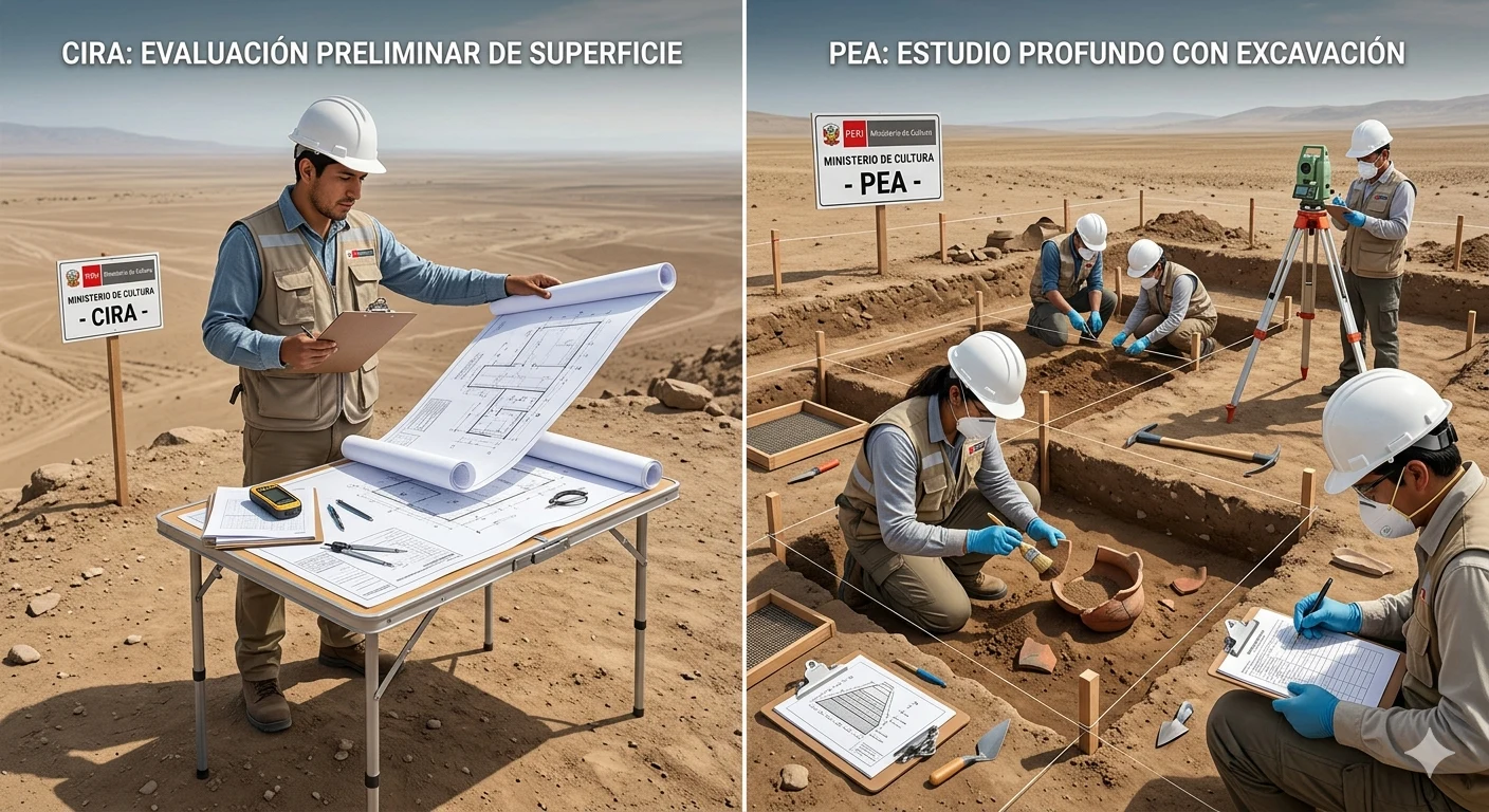 Debes paralizar inmediatamente solo el sector del hallazgo, avisar al Ministerio de Cultura en menos de 24 horas y elaborar un Proyecto de Rescate Arqueológico.